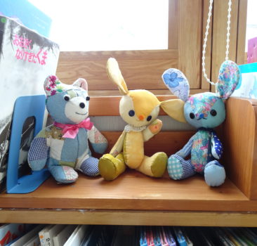 利用者さんお手製のぬいぐるみをいただきました。パッチワークで色鮮やかな布をつなぎ合わせた、とても愛らしいウサギさんとクマ...