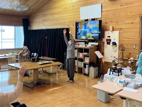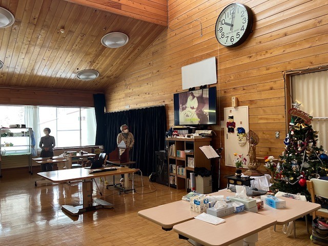 たくさんの利用者さんがホールへ集まって楽しんでくれました。