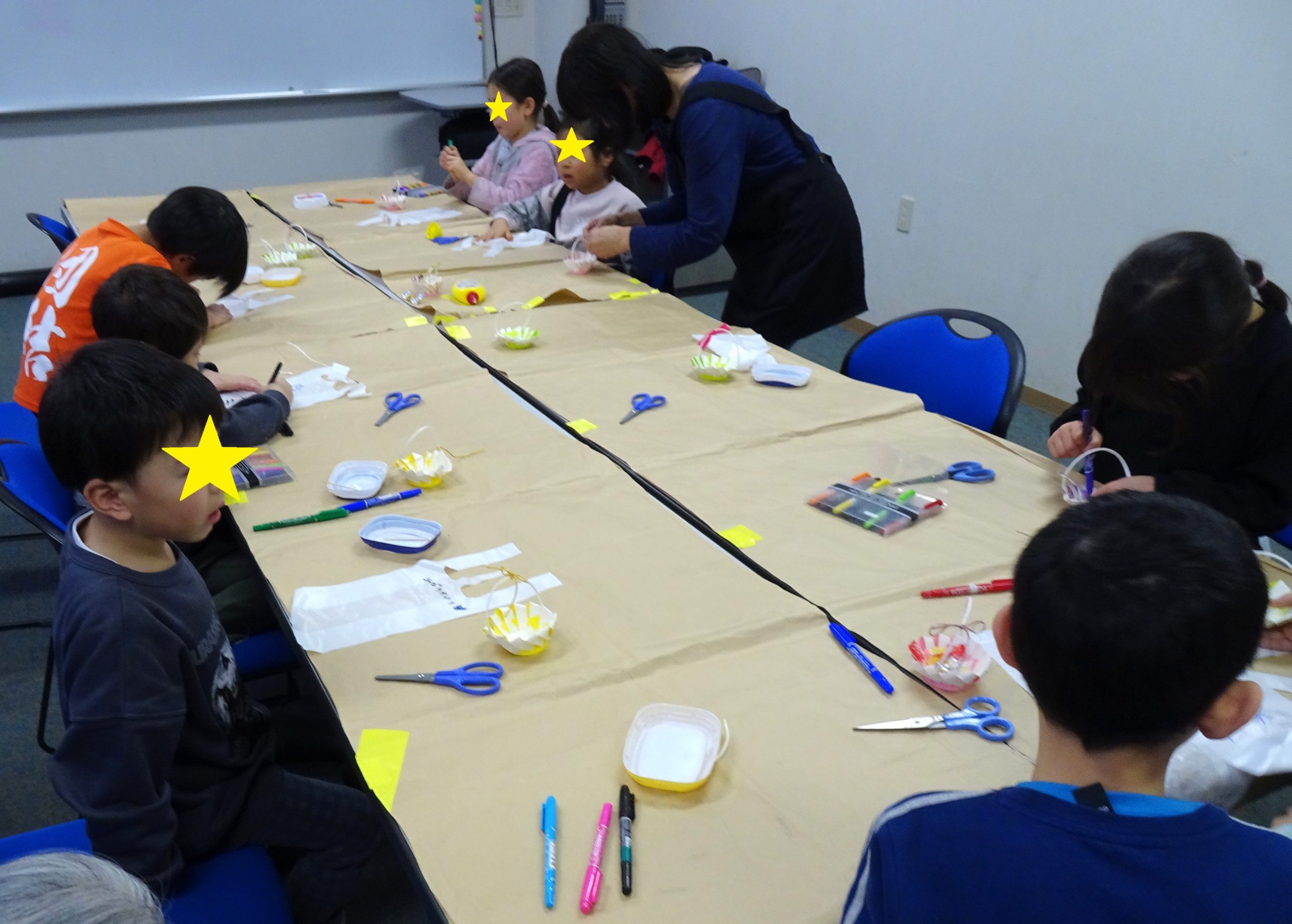 あそぶっくらぶでは子どもたちに工作を教えたり、