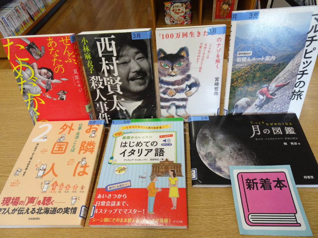 asobook 新着本 2026年3月7日 2026年3月7日 3月7日、本日の新着本は、20冊です。 『#100歳アイ』名医が教える「100歳までくっきり見える黄金ルール」と題して、12のトレーニングやケア方法がのっています。本文の字も大きく見やすく、見えにくさの不便を感じている方にはおすすめです。 他にも『#簿記入門』『#はじめてのぬか漬けレッスン』のように新しいことに挑戦できそうなものや、『#おばけのマール』の最新作に原作本も2冊あります。 お好きな本を探しに、是非いらしてください。
