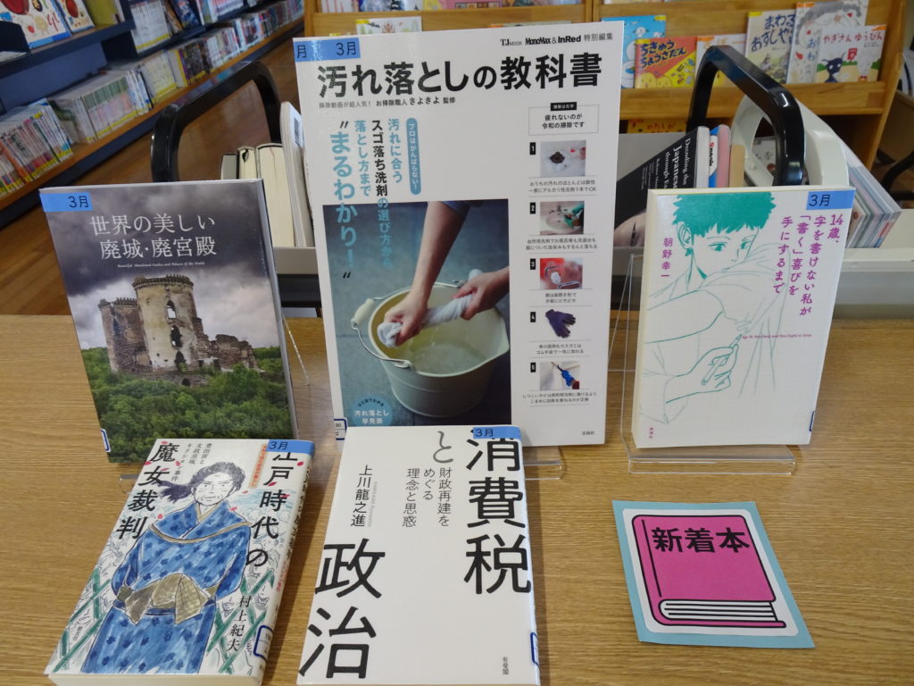 新しくコーナーを作った読書バリアフリーの本や、汚れ落としの本、美しい廃城・廃宮殿の本に加えて