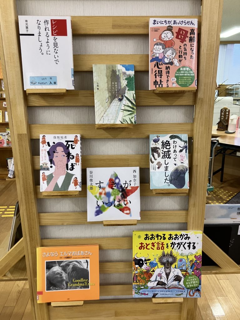 asobook お知らせ 2026年4月2日 2026年4月2日 カウンター前にある大きな柱には、毎月テーマを決めて本の展示をしています。新年度1回目の柱展示は、『心に響くタイトルの本』です。思わず手にとって読みたくなるタイトルや、最後まで読むとタイトルの意味がわかる本など、選りすぐりの本を集めました。出会いの季節。本とのよい出会いもありますように。4月24日まで展示しています。ぜひご覧ください。