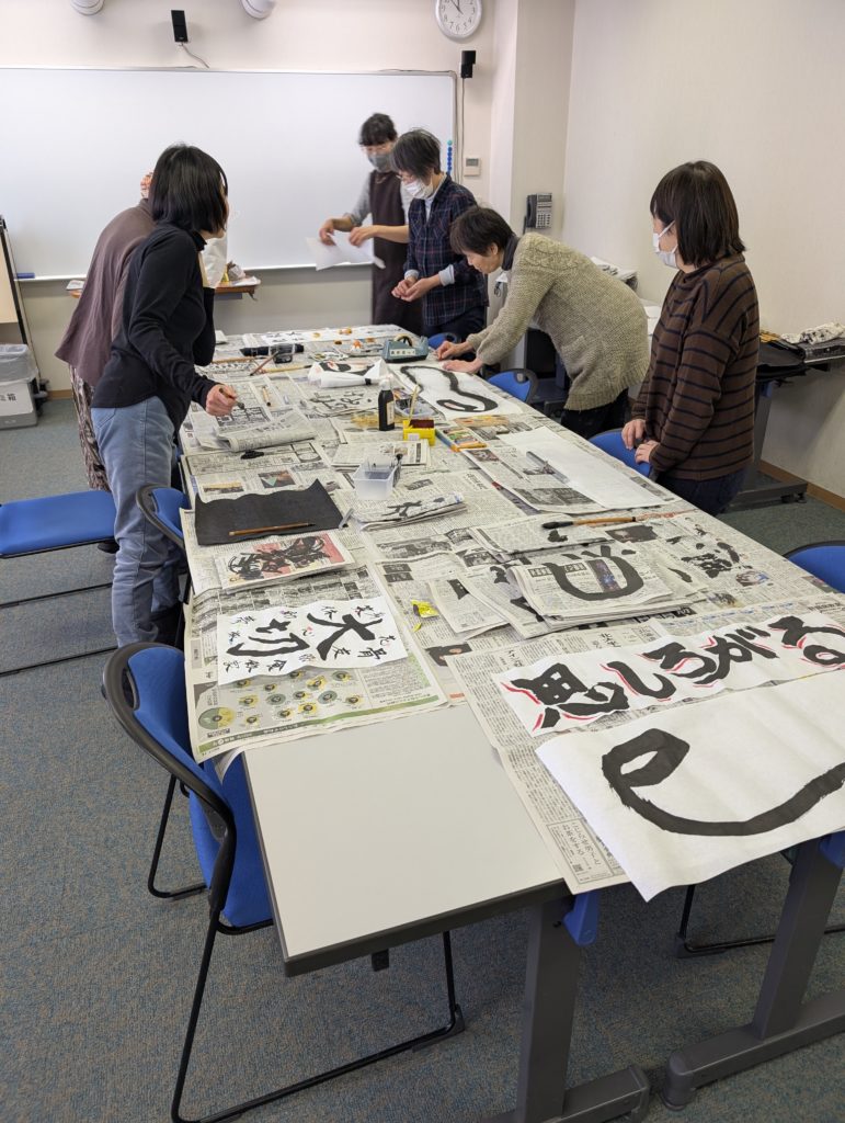 asobook お知らせ 2025年2月9日 2025年2月9日 2月に入り、ちょっと遅めですが、いっぷくどうさんが書初めをしました。今年のテーマなどをそれぞれが思い思いの筆運びで書初めました。個性豊かな作品がたくさん出来上がりましたので、3月の『趣味の展示』コーナーでお披露目します。お楽しみに~~❣