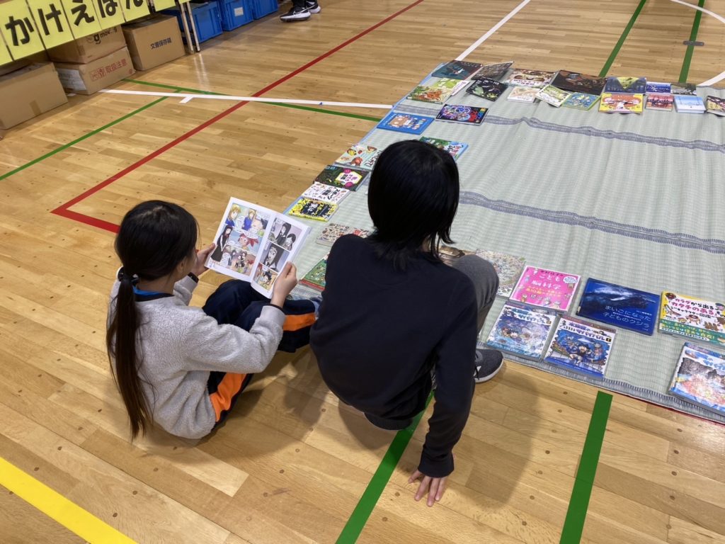 asobook お知らせ 2025年2月14日 2025年2月14日 2月14日(金)、近藤小学校でブックフェスティバルを行いました。北海道立図書館の児童書約500冊と、しかけ絵本80冊、おはなし迷路を体育館に並べ、自由に読んだり借りる本を選んだりしました。頭を寄せ合って友だちと1冊の本を読んだり、床に座り込んで読み入ったり、しかけ絵本に歓声をあげたり…思い思いに楽しい時間を過ごしていました。