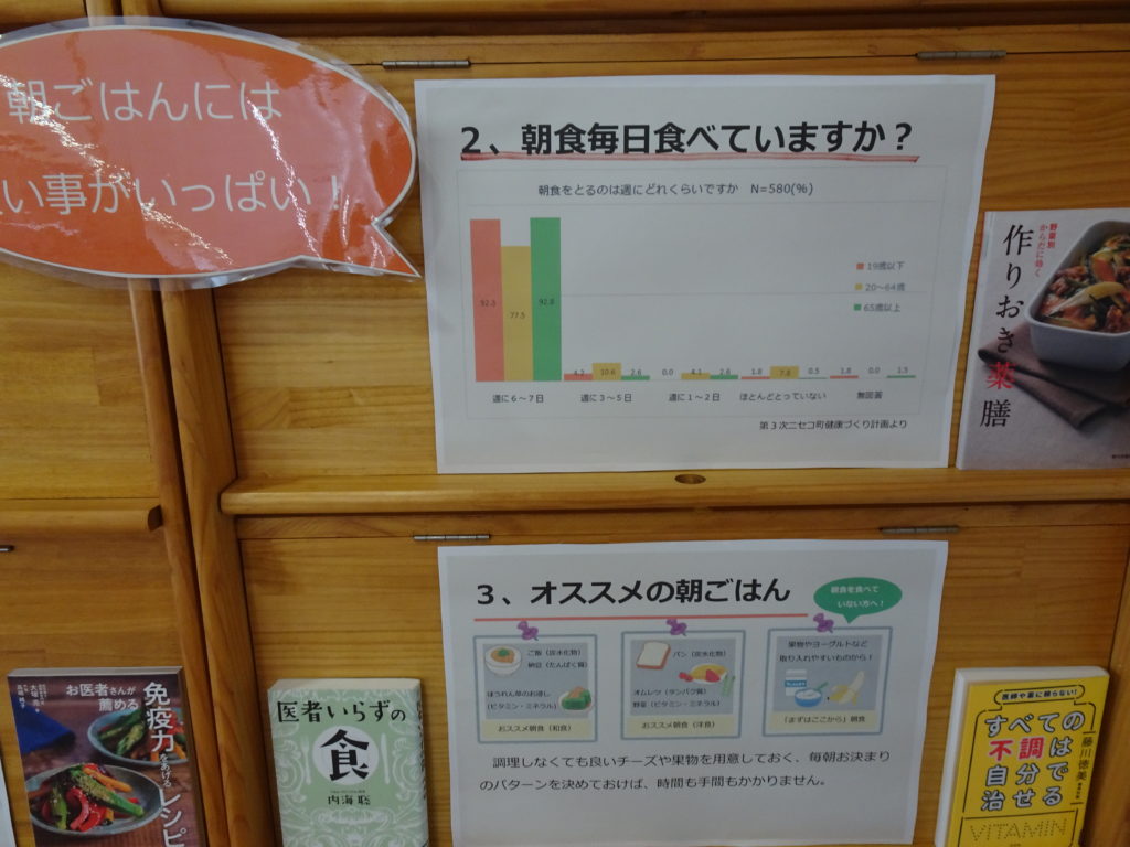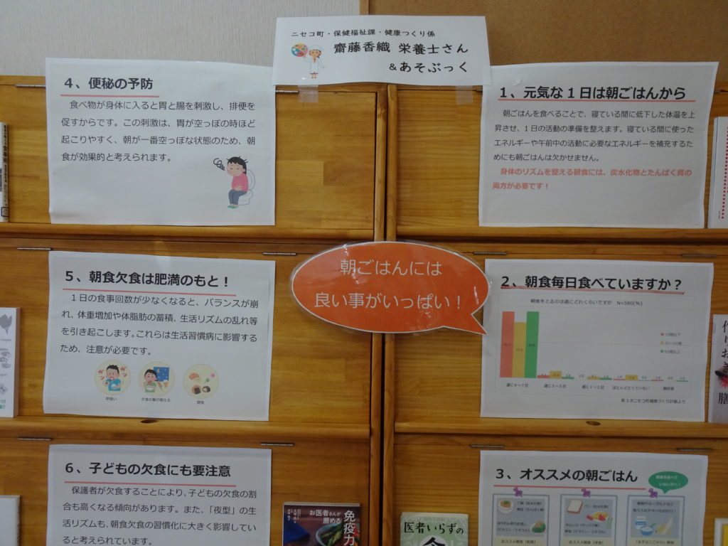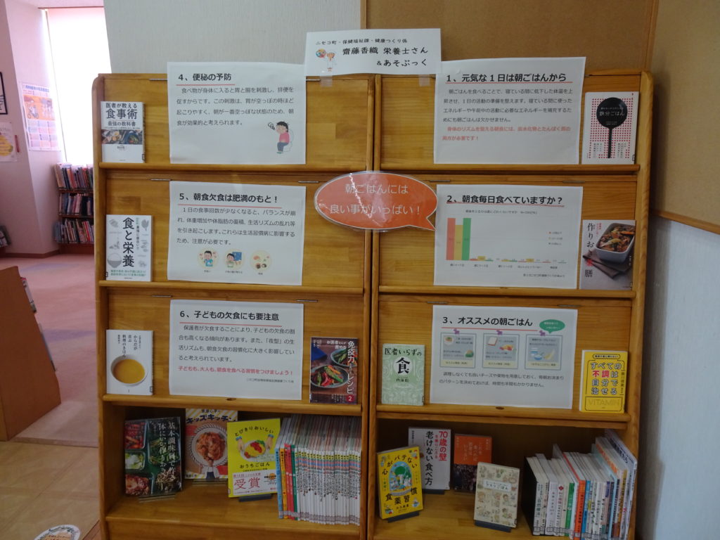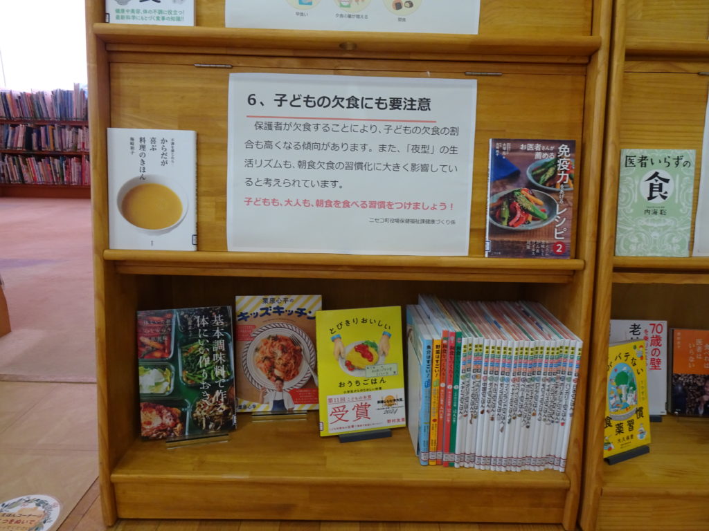 asobook お知らせ 2025年5月30日 2025年5月30日 5月30日(金)から保健福祉課の栄養士さんとの協力で朝ごはんの大切さについて書かれたポスターなどの展示と合わせて食育に関する本の展示が始まりました。毎年6月は食育月刊です。この機会に食と栄養について考えてみませんか。