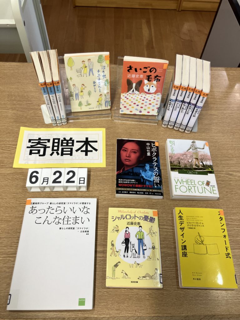 asobook お知らせ 2025年6月22日 2025年6月22日 たくさんの新着本や寄贈本が入りました。新着本は、あそぶっくでも人気の作家伊坂幸太郎さんや、北海道出身の作家千早茜さんや馳星周さんの最新作が入りました。また、茶道や山登り、歯並びに関する本、絵本、児童書、大活字本など、さまざまな本をご用意しました。寄贈本は、時代小説など多くの文庫本の寄贈を賜りました。ありがとうございます。新着本コーナーに展示していますので、ぜひご覧ください。