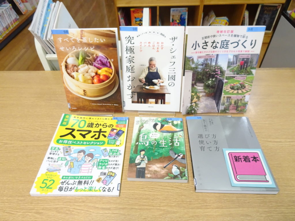 asobook お知らせ 2025年9月28日 2025年9月28日 今週も新しい本が入荷いたしました。三國シェフの家庭料理やせいろ蒸しのレシピ本、70歳からのスマホの便利な使い方、包丁・砥石の選び方、使い方等いろいろなジャンルの本が入りました。秋の夜長の読書タイムに是非どうぞ